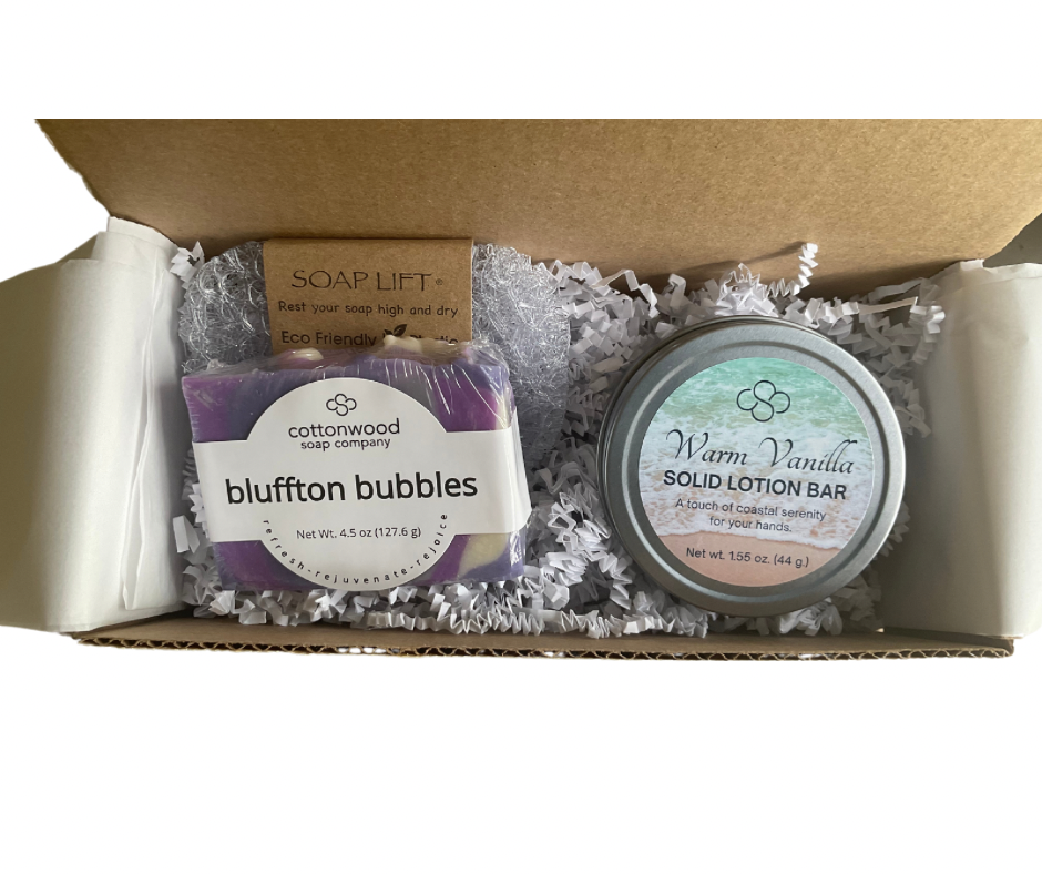 Treat someone special—or yourself—to a refreshing dose of coastal self-care with our Coastal Care Package. Each gift box features a luxurious artisan soap, a coordinating Soap Lift to keep it fresh and lasting longer, and a solid hand lotion bar to soothe hardworking hands. Whether you’re saying thank you, happy birthday, or just sending a little sunshine, this curated trio delivers everyday indulgence with a breezy, beach-inspired twist.