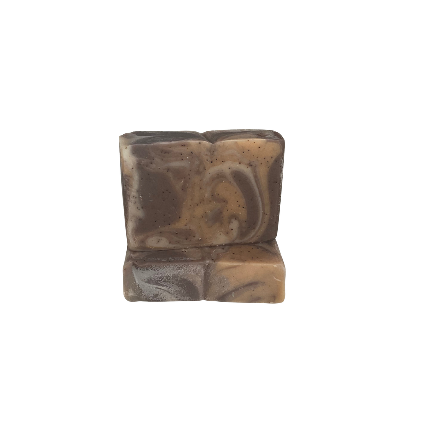INGREDIENTS: Rice Bran Oil, Palm Oil (sustainably produced), Coconut Oil, Distilled Water, Sodium Hydroxide, Castor Oil, Sweet Almond Oil, Fragrance Oil, Tussah Silk, Coffee Grounds, Mica, Titanium Dioxide, Tin Dioxide, Iron Oxide.