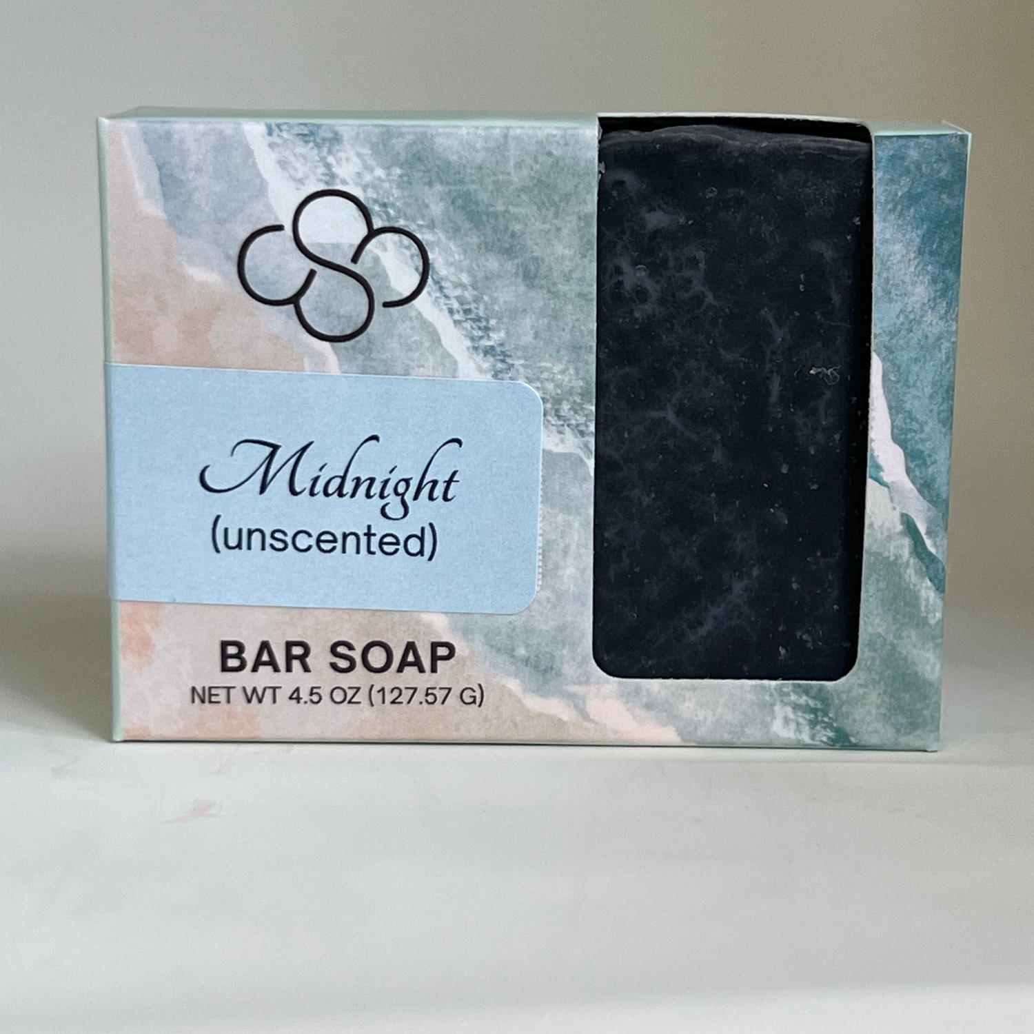 Bold, pure, and refreshingly simple — Midnight is an all-natural, unscented artisan soap inspired by the quiet serenity of the coast after dark. Colored naturally with detoxifying activated charcoal, this bar brings a sense of calm and clarity to your skincare ritual. Like a moonlit walk along the shoreline, Midnight offers a moment of stillness in your day — just you, the ocean, and clean, nourished skin.