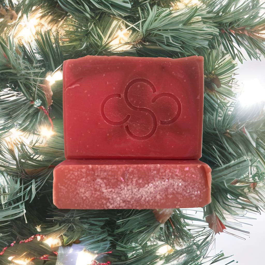 Celebrate the season with the whimsical charm of Seaside Sugar Plum. This handcrafted holiday soap captures the magic of winter by the coast, blending festive sparkle with ocean-inspired elegance. Each bar features rich red tones layered together and topped with a shimmering white glitter finish, reminiscent of a sugared plum dusted with frost.