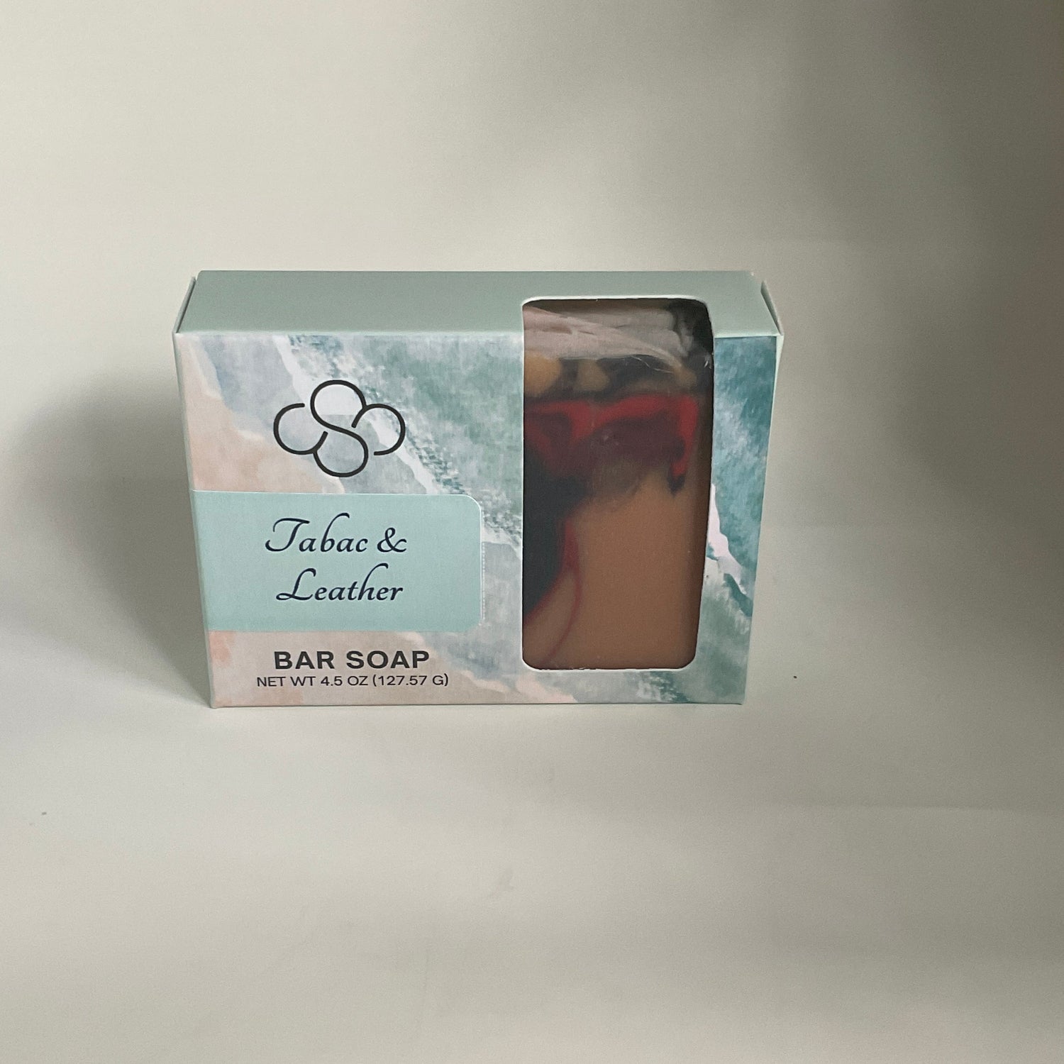 Where rugged meets refined, Tabac & Leather captures the spirit of a Southern gentleman by the coast—bold, grounded, and effortlessly cool. With rich swirls of black, red, and gold, this striking bar evokes sunsets over the water and evenings spent on the porch with a glass of bourbon in hand. The scent is warm and complex, blending notes of spicy coriander, clove, tobacco leaf, weathered leather, and toasted oak—like sea air mingling with the timeless charm of old coastal wood and well-worn leather.